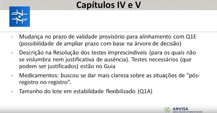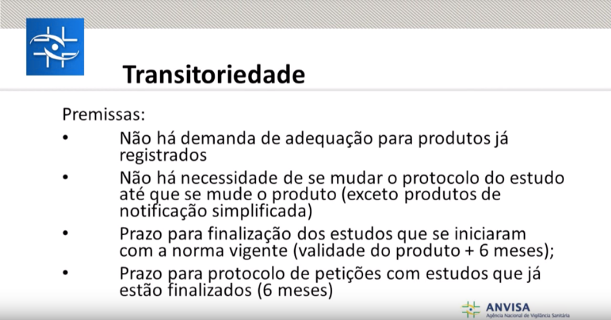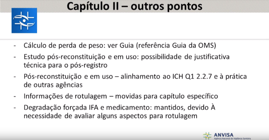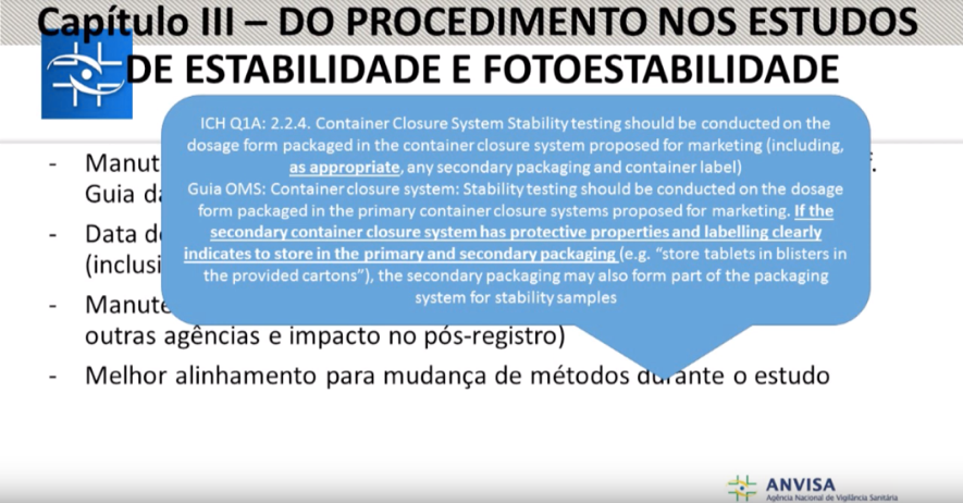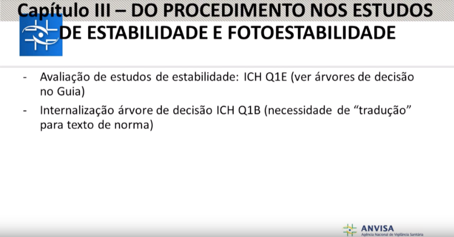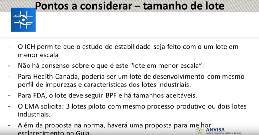 A regulamentação atual sobre o tema é de 2005, RE nº 1, além disso existem diversas recomendações em outros documentos da Anvisa, o que prejudica o entendimento dos critérios. Os regulamentos não têm abrangência total sobre o tema e falta clareza sobre os requisitos para estudos de estabilidade, o que motiva interpretações subjetivas.
